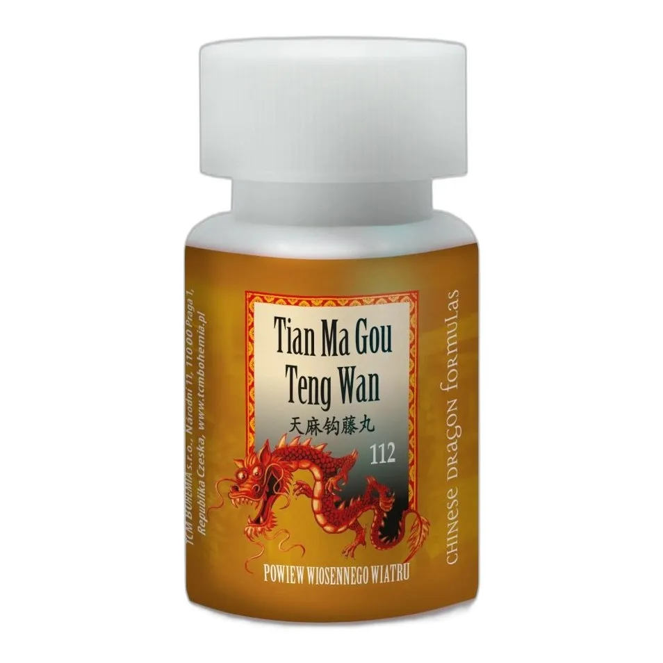 - T112 Tian Ma Gou Teng Wan to tradycyjne chińskie zioła w formie kulek, które są stosowane do łagodzenia zawrotów głowy i szumów usznych.